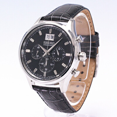 腕時計 時計 メンズ アナログ クオーツ クロノグラフ ビッグデイト ビジネス 仕事 就活 防水 レザー 革 ブラック 黒 SPC083P2