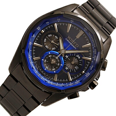 腕時計 メンズ ブルー ブラック リフレクション クロノグラフ
