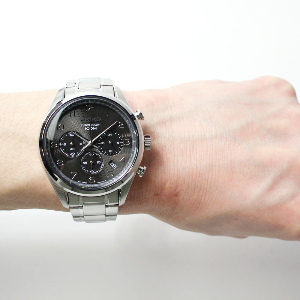 腕時計 時計 メンズ 防水 クオーツ アナログ クロノグラフ ステンレス メタル シルバー ガンメタリック グレー SSB295P