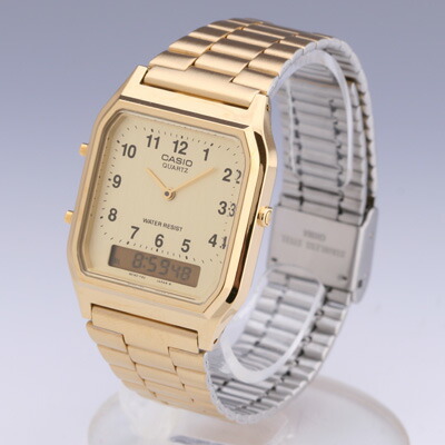 腕時計 時計 メンズ レディス ユニセックス アナログ デジタル アナデジ ベーシックモデル ビジネス カジュアル 仕事 防水 ステンレス メタル ゴールド 金 AQ-230GA-9B