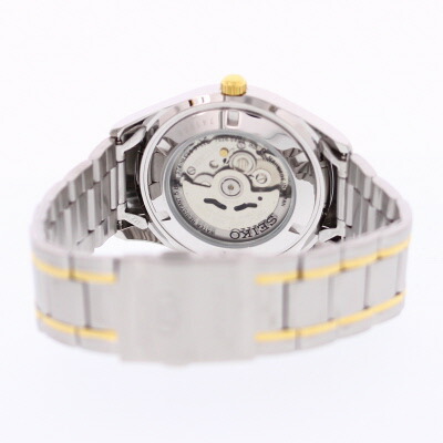 腕時計 時計 メンズ アナログ 自動巻き オートマティック 日本製 カジュアル 防水 ステンレス メタル ブレス ゴールド 金 シルバー 銀 コンビ シースルーバック 裏スケ SNKP22J
