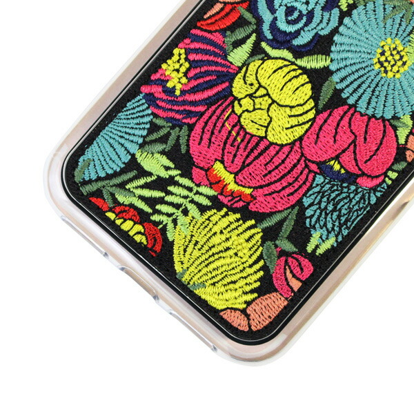 背面に刺繍があしらわれたスマホケース。>