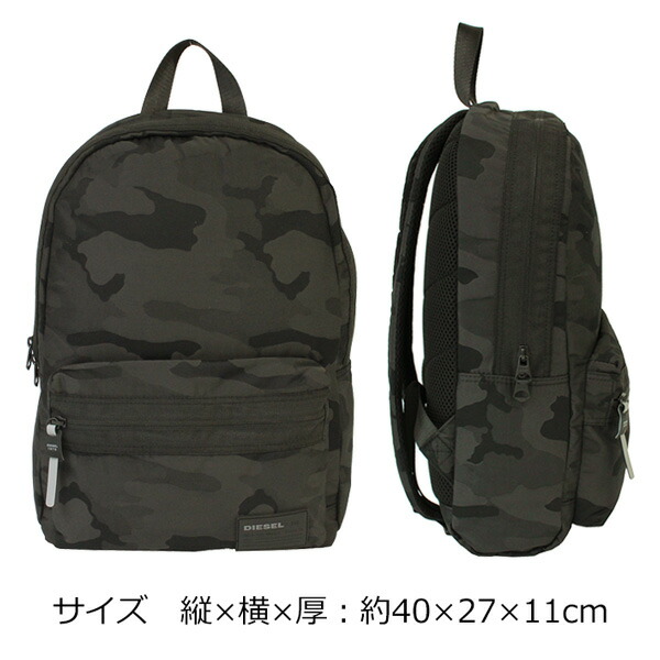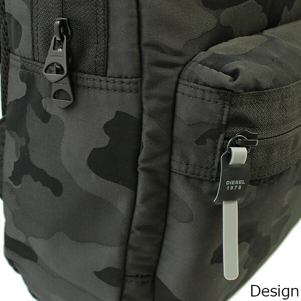 デイリーに使いやすいシンプルなデザインのバックパックです。DIESELのアイコニックな柄のひとつ、カモフラージュパターンをあしらいました。