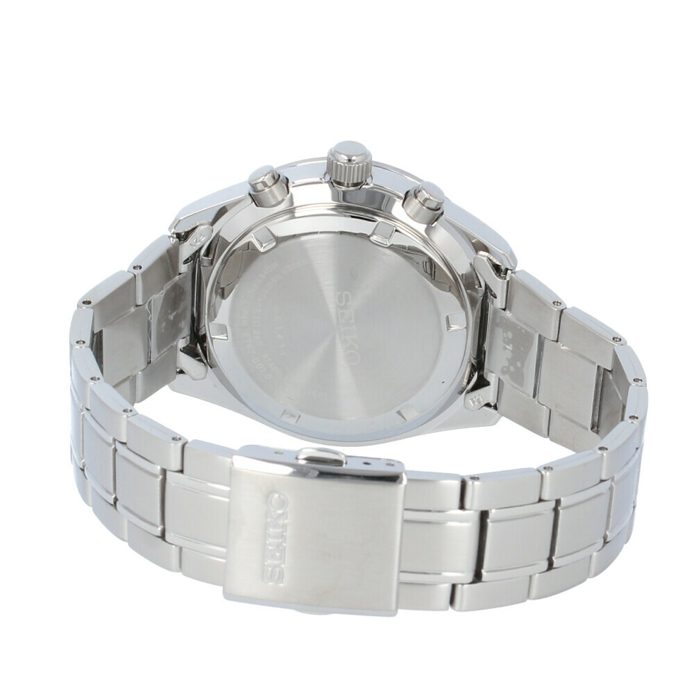 腕時計 時計 メンズ アナログ クオーツ クロノグラフ スポーティー ビジネス 仕事 就活 防水 ステンレス メタル ブレス ネイビー 紺 ブルー 青 アイボリー シルバー 銀 SSB377P