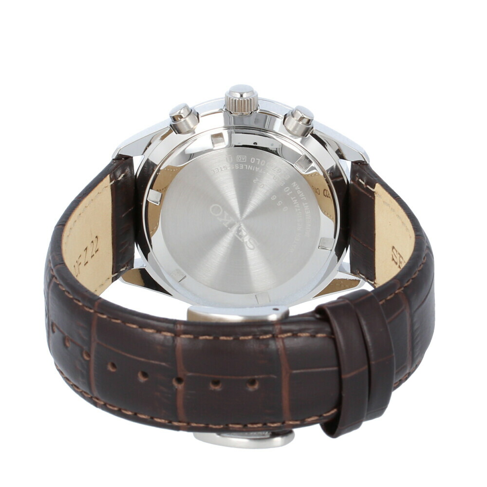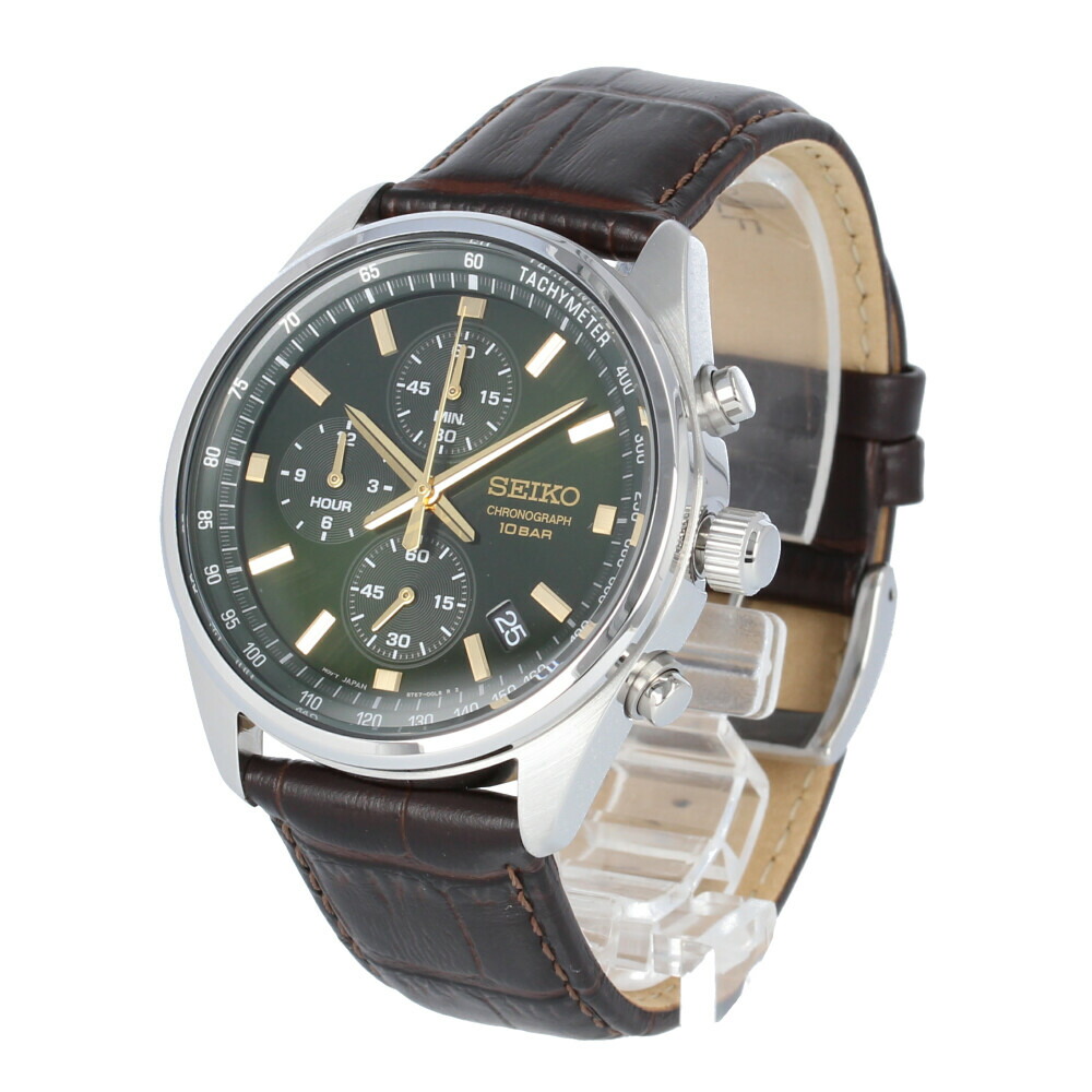 腕時計 時計 メンズ アナログ クオーツ クロノグラフ スポーティー ビジネス 仕事 就活 防水 レザー 革 グリーン 緑 メタリック ブラック 黒 SSB385P
