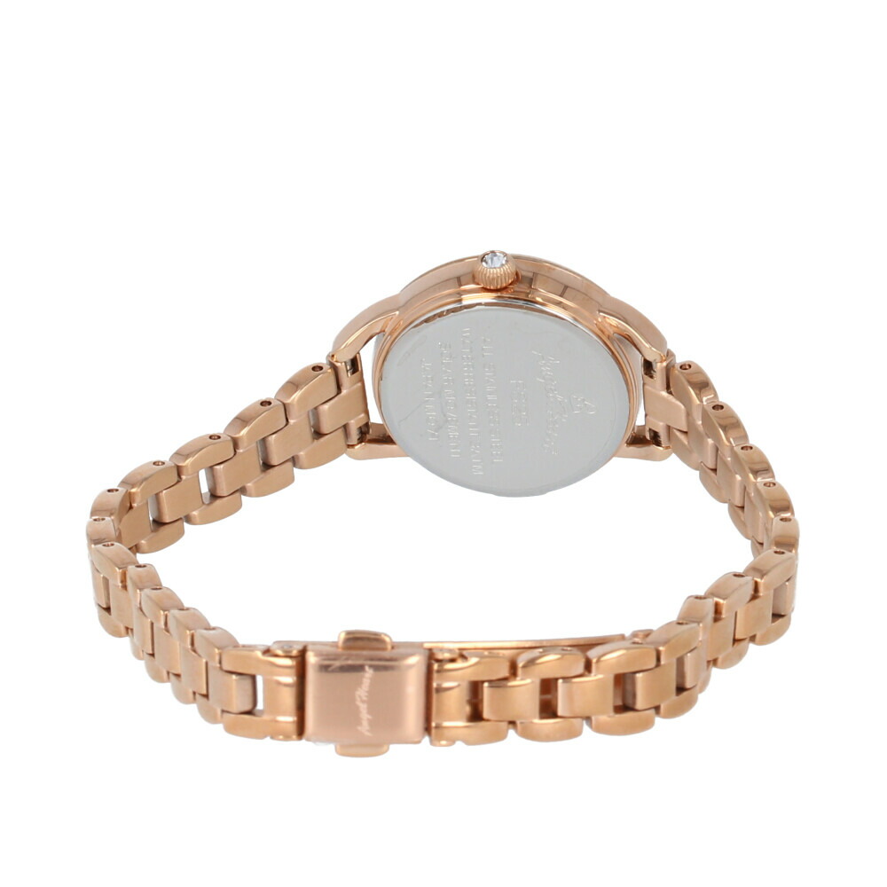 シンプルだけどエレガントさを忘れない。 6時位置で一番星のように輝くスワロフスキー・クリスタルが、”デキル女性”を演出します。時計のラグ、数字、コマ全て曲線を描いているので、優しく女性らしい印象に。手もとを華奢に、美しく演出します。