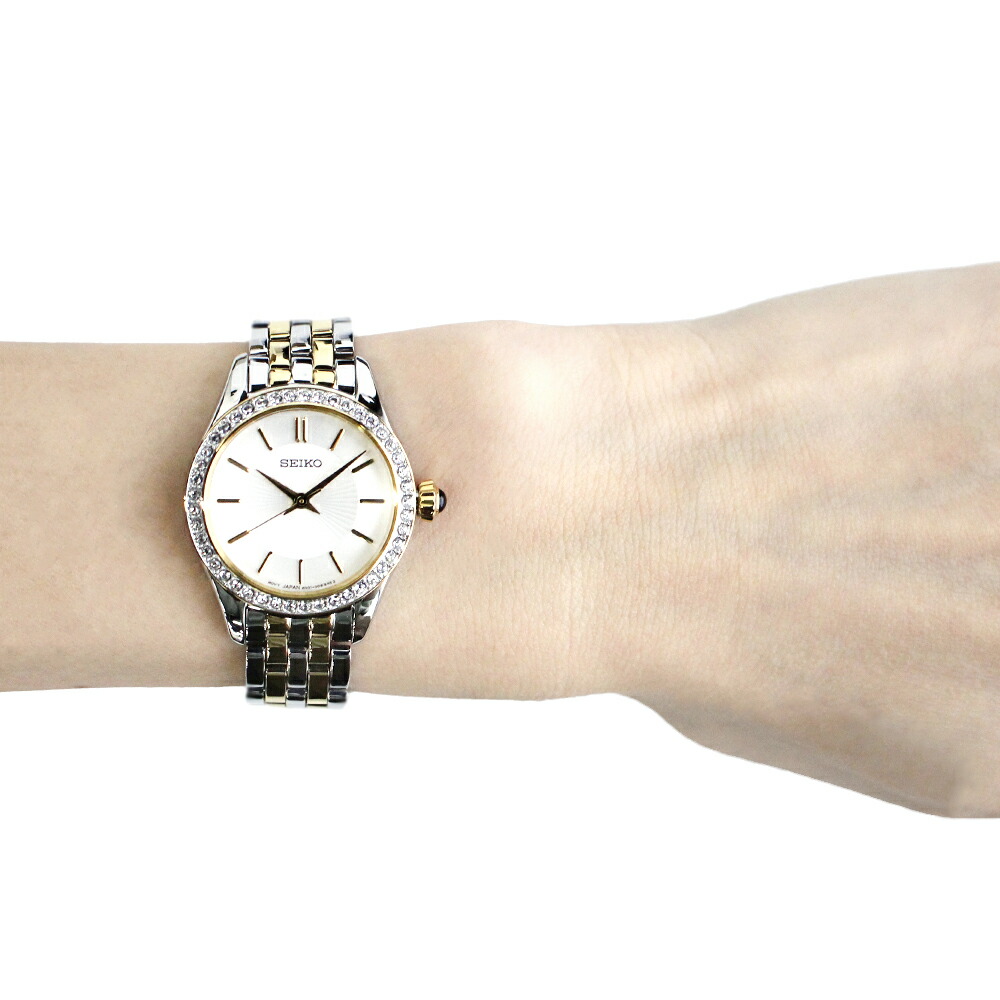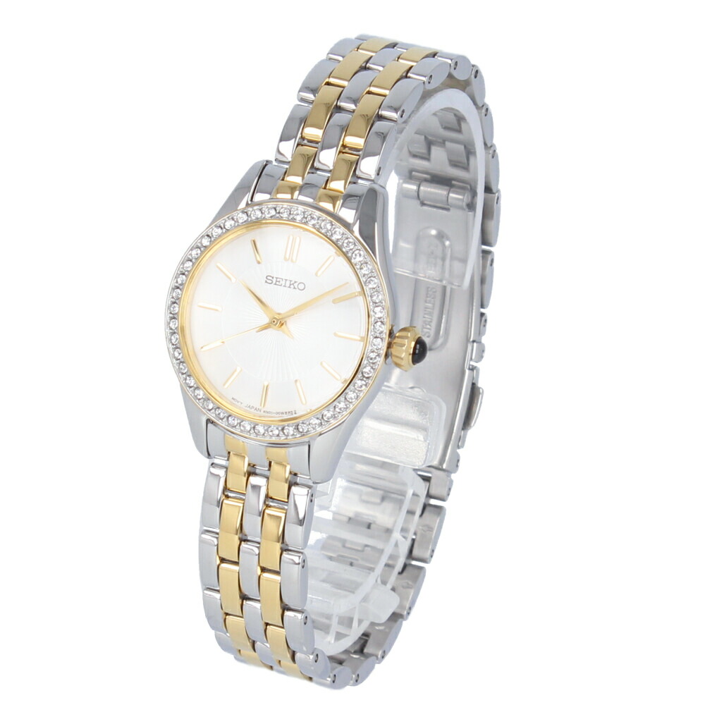 腕時計 時計 レディース クオーツ アナログ 3針 ステンレス メタル コンビベルト ツートン シルバー ゴールド ホワイト ストーン SUR540P