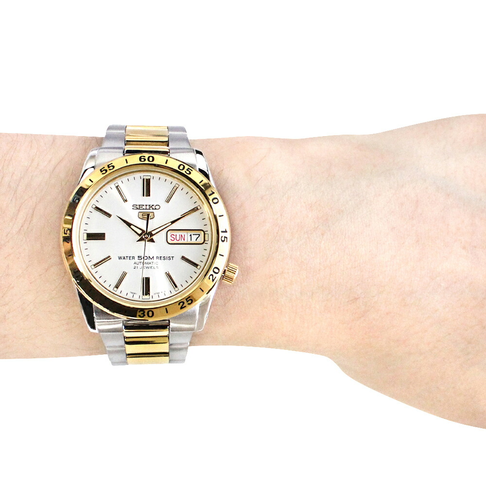 腕時計 時計 メンズ オートマチック メカニカル 自動巻き アナログ 3針 ステンレス メタル コンビベルト ツートン シルバー ゴールド ホワイトシルバー SNKE04K