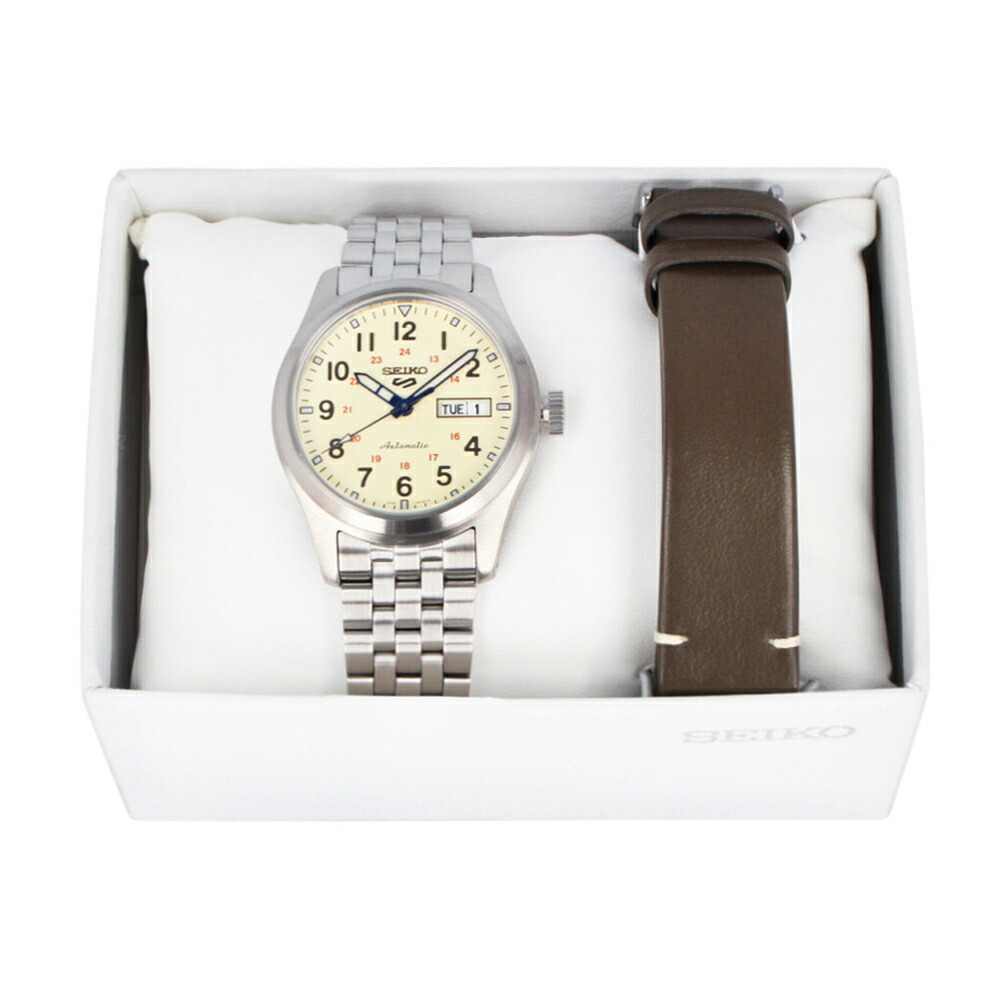 腕時計 時計 メンズ 防水 オートマチック 自動巻き アナログ 3針 ステンレス メタル レザー 替えベルト シルバー アイボリー ブラウン SRPK41K